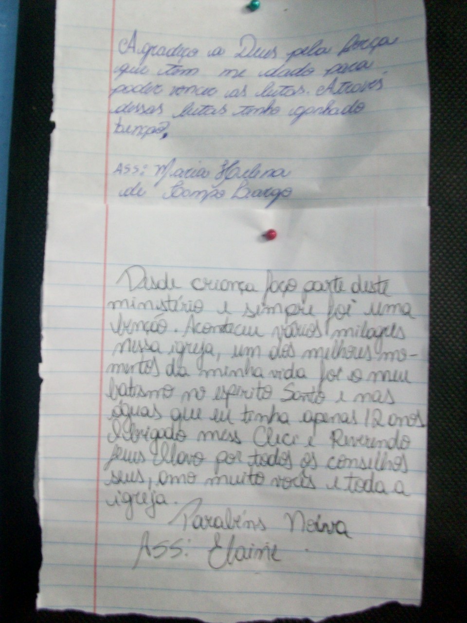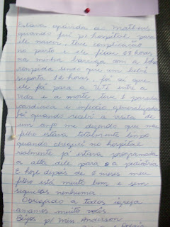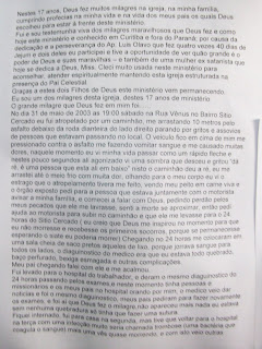 Testemunhos a próprío punho de pessoas que receberam benção na Igreja a Noiva:
